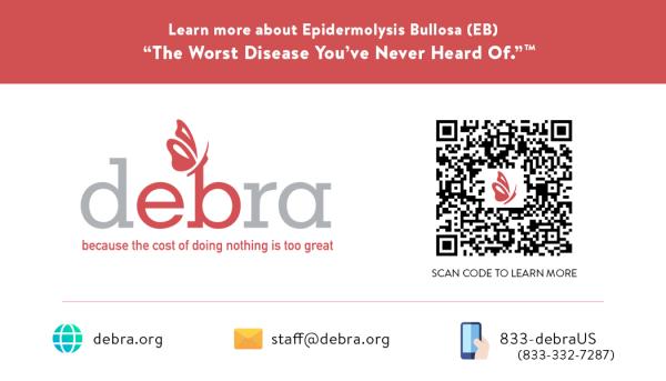 debra of America has created EB Cards that can be handed out in your community – to business owners, other parents, neighbors – quickly explaining what EB is and how it affects you/your child.